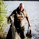 Цього дня знову робимо корективи на одному пруті, який особливо не приносив нам риби, і після перекліпсування та закиду на нову дистанцію отримуємо на протязі пів години клювання риби 9.100; Знову кладемо в дану точку і не проходить десяти хвилин, як вона знову спрацьовує, я підсікаю, бо хлопці стояли в воді та виважували іншу рибу. Я помалу підтягую з берега, поки хлопці паркують першого, і коли виходять на берег, я відразу прямую в воду на зустріч рибу, і відчуваю знайому поведінку «затонулого мішечка», з підсаком Олег який вже наловчився холоднокровно паркувати «шаранів» в підсак. Короп різко починає зтравлювати ліску в праву частину ближче до 31 сектора, я ж іду за ним підмотуючи ліску на шпулі, він декілька разів розвертався і втікав на мілководдя. І за якимось разом винирнув і було помітно що то не малий короп, ми вже з Олегом знали як діяти та не форсуючи помалу підводили його до підсака та паркуємо, і вже в сітці бачимо що то той довгоочікуваний «кракен» на якого ми чекали всю ніч, але він приплив в ранці. Якраз в секторі вже знаходилися судді які прийшли на планове зважування, і ми відразу його зважили, вага показала 20.150; радості не було меж, це друга риба 20+; яка суттєво укріплює наші позиції в таблиці десяти риб. Протягом півторьох годин ми беремо з цієї точки ще три риби 10.000; 15.225 і третя риба яку виважував Олег заважує на 19.150; Ми щасливі, Олег ще більше щасливий — це його новий особистий рекорд. І він вже сказав що може їхати до дому, оскільки за чим приїхав те він вже отримав з повна. Але в нас трохи інші плани та цілі, і тут нам Олег потрібен. Протягом всього дня риба в нас клювала риба набагато результативніше ніж в попередні й середня вага її була від 9 до 13 кг. Корм в якому вже був присутній тільки варений бойл почав працювати як нам було то потрібно, мілка риба практично нас не турбувала. Сьогодні основну масу риби виважував Олег я ж стояв на підсаці.
