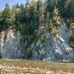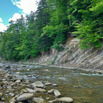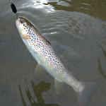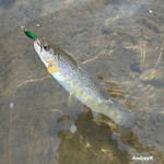 Первый раз ездил с семьёй на отдых в начале августа. Времени именно на рыбалку было не так и много, полноценно был на речке только полдня, плюс с погодой, к сожалению, не совсем повезло - периодически шли дожди и вода была мутноватая. Только она более-менее очищалась, как на следующий день опять был дождь. Потому результаты были довольно скромные - поймал всего около 5 форелек и было ещё десятка полтора сходов и холостых поклёвок. На этот раз ничего трофейного не попалось - обычные некрупные экземпляры, все поклёвки на вращающиеся блёсны. Увы, по техническим причинам почти все фото были потеряны, так что показывать нечего.