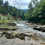На третий день встал пораньше, думал будет удачное продолжение, но меня ждал неприятный сюрприз - вода в речке опять была очень мутной, наверное где-то на одном из притоков прошёл дождь. С таким мутняком шансы что-то поймать были минимальные. Решил попробовать удачу на другой речке. Переехал километров на 50 по серпантину через перевал, и тут меня тоже ждало разочарование - и эта речка была мутноватая. Но раз уже приехал, то надо хоть попробовать... Проверил пару точек, но заработал только одну поклёвку и больше никакой активности... Оставаться дальше не было смысла, на следующий день по прогнозу должны были начаться дожди на несколько дней. Пришлось попрощаться с Карпатами до следующего сезона и собирать вещи на поезд домой...