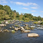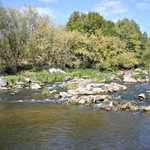 Очень красивый каскадный перекат, ну прям как на Южном Буге, каменные валуны, шум реки и живописная природа.
