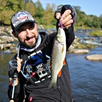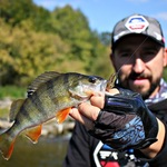 Начал по традиции с джига, новое место, шикарный вид ниже переката и по определению ямы и глубинки, и буквально с первых забросов садиться хороший окунь, да еще и на UL до 8-ми грамм на струе, это то зачем мы приехали - за эмоциями!