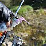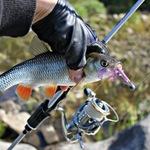 Но зато нашел интересную ямку где плескался Жерех, малёк в рассыпную, но заряженный на успех G-Tail Twin 2" от Rein`sa , принес на ряду с окунями и приятно голавлика с ямки с его фирменным ударом.