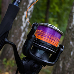 И получилось так, что после того, как завез одно удилище, я возвращался к берегу и попал на свою леску. Если бы на веслах, то ничего бы не было — цепанул да и все, а я то на моторе. В общем к концу рыбалки пришлось использовать вот такой вот цветной шок лидер, в надежде, что рыба все-таки не испугается и клюнет.