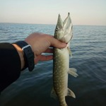 Нетішинське водосховище. 20.10.2019. Ловив на спінінг. Все дуже коротко, з 11 до 16 зловлено 3 окунці і міні щучка. Окунь стоїть на глибині 6+ м на ракушці. Вся риба попливла підростати. Доречі, охорона водойми забороняє ловити з лодки, можуть навіть і протокол оформити.