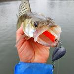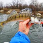 Джиговая ловля в дальнейшем не приносит положительного результата, поэтому принимаем решение протянуть за собой воблеры по закоряженному руслу реки. Места здесь щучьи, но риск потерять приманки всегда очень высок. Будем рисковать! Возле утонувшего дерева происходит заветная поклевка. Еще одна деснянская красавица во время вываживания дарит нам яркие эмоции в этот пасмурный морозный день.