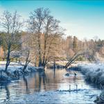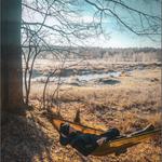 Погода аки пик апреля. За бортом 3 января. Груз новогодних праздников давит тело. Душа требует простора. Наконец-то вырываемся с коллегой на рыбалку. Первое впечатление, даже слегка шокирует. Не верится, что пару дней назад был НГ. Скорее поверишь в то, что в солнечных лучах должен запеть жаворонок... Просто зависаем на час с чем-то на берегу. Я бегаю и снимаю красоты, потом болтаюсь в гамаке, греясь на солнышке и попивая свеже сваренный кофе. И только спустя пару часов, с толком... с расстановкой... до заката растворяюсь в малоречье. До полнейшей темноты не хочется покидать реку. Возвращался "на ощупь" по незнакомой лесной дороге. Ориентация нулевая, кроме примерного направления, Дважды мазал и сворачивал не туда. Как оказалось я очень прилично "пробежался". Уже начинаю сомневаться, а вообще верно ли я иду. Звоню. Прошу крикнуть-свистнуть. Слышу