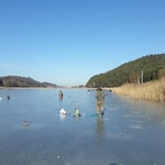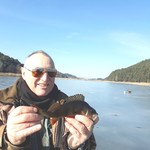 Страдч. 10-00. Лід 4,5 см в плюсі. Рибалки вже були на льоді. от і ми висадились. Ловили десь біля 4 годин. Лід став прогинатись, вода вийшла на лід. Сафарі закінчили. Хоча камікадзе ще лишались.