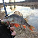 Первые забросы и много спортивного окуня, было интересно наблюдать как не крупный полосатик заедал резину в 2.5", голодный, жадный, и дикий, очень красивый окрас - речной.
