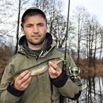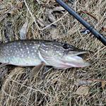Каждое новое место приносило нам активность рыбы, то окунь, то сходы и сопровождения приманок, и на очередной перспективной точке, на фоне десятка окуней - я таки втащил приятного щупака, такого бурого окраса, речная, сильная и очень желанная.