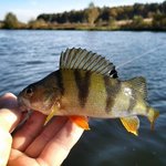 Сьогодні подзвонили друзі і захотіли поїхати на гриби. Переконав, що риби більше шансів половити зараз ніж в сухому лісі шукати грибів яких нема. Того лодку в багажник і з обіду до вечора провели час на водоймі. Хороша сонячна погода - щука явно буде не активна, та й двоє тролінгістів сказали що катаються з нулями, тому націлився на смугастих. Спочатку декілька дрібних спокусилось.