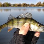 Отак понад берегом пересувався до протилежного краю водойми де влетів другий, такого ж розміру. І знову тиша і знову жодного виходу окуня. Але надія була. Вирішив підпливти до очерету з сторони куди дув вітер, і нарешті знайшов там зграю окунців. Посмикав їх трохи) Стояли майже у самого дна на клаптику десь метр на метр. Загалом десь до десятка.