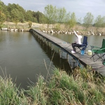 Поносивши всі речі на острів,починаємо міряти глибину і тут шок.Глибина в перпективних напрямках,на 10-15м від берега 20-40 см, а далі став весь зарослий через малу глибину,а кидати в інший бік немає можливості,тому що там закинуті рибацюги з берега. В результаті частина вудок закинута в траву,з розрахунку на вдачу і якомога далі від берега,а частина в берег в сторону сторожки(до неї метрів 40-50).бо там знайшли глибину 60-80см.на маркування і розпитування охорони пішло біля 2 годин,і ситуація наступна: став виритий екскаватором,тому ніяких бровок,старих русел і перепадів не може бути впринципі.