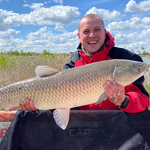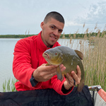 В один момент я наполіг на тому, щоб Діма взяв одну свою снасть і ціленаправлено кидав дуже точно в одну точку і строго по таймеру в 20 хвилин. Для цього підготували спеціально дрібний пелетс "blue fusion" від Haldorado замішаний на такому ж ліквіді. І після третьої годівниці у Дімона клює нарешті рибина у вигляді дебелого лина. Він перезакидує і у нього потужне клювання й кількахвилинної боротьби амурище в колисці. Оу є! ПОЧАЛОСЬ! (насправді ні)