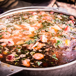 Ближче до обіду Олег вирішив зайнятися приготуванням основної страви даної риболовної сесії, а саме Бограчем. Перечитавши купу літератури й переглянувши масу рецептів, Олег вибрав най цікавіший і по його словам найскладніший. Кількість продуктів яку він розклав горою на столі, вражала і якось не вкладалося в голові як то все вміститься в 8 літровому казані. Страва складна і довготривала в приготуванні, по словах Олега раніше ніж через чотири години ми нічого не побачимо у своїх тарілках. Тому ми передали всі кулінарні важелі Олегу і намагалися не заважати йому, бо тут він був БОСС. Добре що погода сприяла в даному проміжку часу приготування цієї стави, і Олег всівшись у своє крісло біля того восьми літрового казана всі чотири години чаклував над ним.