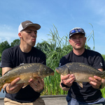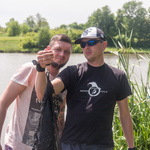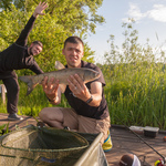 Відразу після змагань ми вирішили не кидати ніякого крупного додаткового корму у воду, бо сподівались підібрати рибу, яка вже тут крутилася. Але кльову по-суті цього вечора не було. Аж о пів на одинадцяту маємо дві покльовки підряд і Слава позує із заліковим голим красенем: