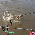 Годували точку спомбом. Крім стартового закорму старались через кожну другу рибу підкидати пару порцій рибної смакоти у воду. Цього дня Діма експериментував зі всіма своїми прикормками і таки визначив якось на що йому суб'єктивно результативніше ловити, а я не полишав надії, що велика риба має клюнути з-під дамби.