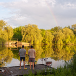 Де найкраще місце для сяткування дня народження? Звісно, що на риболовлі! З моєї ініціативи поїхали ми з друзями в Житомирську область на водойму з назвою "Підкова", де ще ніколи не були. Попередньо забронювали сектор №10 якраз на виступі півострова, навпроти самого шлюзу. Оскільки це був будній день і якраз закінчились змагання місцевого рівня, то рибалок було мало. Поруч з нами взагалі були вільні сектори.