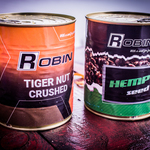 Також мій товариш Сергій Міщук – представник компанії «Robin» яка займається виготовленням зернових сумішей для риболовлі в жерстяних банках, надали нам декілька банок своєї продукції (конопля як ціла , так і крушена, тигровий горіх крушений та мікс шести зерен) якість якої перевірили вже досить велика кількість риболовів.