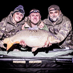 І як по традиції, але не в нашій команді, бо в нас так відбувається рідко, відбулося клювання, 19.00 зпрацювала третя палка, черга виважувати Івана, тому на клювання смикнувся лише він, а я в подумках потирав руки, що скоро і моя черга. Риб йшов до берега, і Ваня почав говорити що там щось не велике, і вже біля помосту зрозумів, що риба легко не здасця, вона почала давити та крутитися в різні боки сектору, довгий час не вдавалося відірвати її з дна, але згодом риб здався і нам вдалося запаркувати його в підсак. Відтарена вага по грубому (ми скручуємо 2 кг на мокрий мішок) показала 19,500 і це при сухому мішку і ходом шкали у 200 грамів. Олег сказав що якби то була його риба, він би її декілька разів переважив і окремо кинув би на електронні ваги, оскільки могла б бути потенційним його Біг Фішем, але виважував Іван в якого Біг Фіш - 28,300; Фотосесія і відпускаємо рибу в воду.