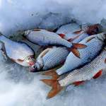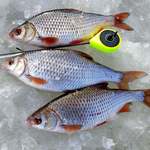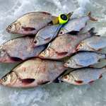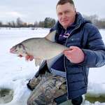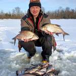 Уже поздним утром нам улыбнулась удача. Настойчивость и старания были вознаграждены сполна. На глубине 2- 3 метра нашли многочисленную стаю достаточно крупной плотвы, густеры и подлещей. С одним крупным лещом мне представилась возможность некоторое время побороться, но он соскочил с крючка в шахте лунки. Руслану же удалось взять околополторушного и околокилушного лещей.