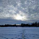 Вновь проведали могучий Днепр. Лезть в толпу не было желания, поэтому практически все утро посвятили поиску своих мест. Несколько из них оказались безрыбными. Пришлось немало походить, потоптать целину… Местами снега по колено, а под ним слой воды. Лед надежный и прочный: 25-30 см.