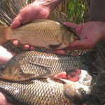 День добрий однодумці. Хочу поділитись з вами своєю риболовлею. Отож, давно я вже хотів поїхати на водосховище Нетішенської АЕС. В суботу, будучи на роботі звонить мені товариш Олександр з пропозицією гарно порибалити. Ну як тут відмовити:) Неділя 5.06.16 р. на годиннику 2:30 і ми вирушаємо. Прибули на місце десь в 4:00, скажу зразу ми рибачили на території хаес, туди нас завіз знайомий Олександра (деталі розголосу не підлягають!). Світанок, краса, природа, пташки розриваються від співу, а ми розкладаємось в ритмі танцю. Дистанція ловлі 67 обертів 5000-ої катушки. Забігаючи на перед, вдень коли вітер мінявся було тяжко докинути кормушку типу "пулька" у вазі 40гр+корм. Кормитись нам допоміг той самий чоловік-провідник, він своїм карповиком спомбом поклав добрих пів відра корму на цю дистанцію веєром. Так як ми ловили з товаришом разом кормове п’ятно мало вигляд банана. Зранку кльову нажаль не було взагалі. Олександр вирішує піти на сусідню водойму в 20 метрах від водосховища. Там він зловив декілька хороших карасів, відзвонюється мені, і почувши про цю новину і зважаючи на те що на фідер не було жодного подьоргування, хапаю поплавчанку і в бій. Спочатку мені попадались лише дибелі червонопірки, а згодом і декілька лодошечних карасів. Час від часу бігав перезакидати фідера, і от через годинку в енний раз прибігаю перезакинути, і наблюдаю картину: лівий крайній фідер згріб усі снасті і перемістився праворуч, надіюсь що він ще сидить, так як ловив на "патерностер" думав що гарно самозасікся, так і сталося він гарно самозасікся та забрав з собою повідок 0,129. Тут вже не до карасів. Сідаю все розпутую, ставлю аналогічний повідок та перезакидаюсь. Через 10 хв впевнена покльовка підсікю - хлоп обрив тогож самого повідка. Злий ставлю повідок - нитку 0.1 гачок більшого розміру і в бій. Не пройшло і 10 хв як перший лящ-підлящ вагою 1300гр на березі. Знову тишина, вертяється до мене і Олександр, показує свій улов в якому присудствувало 2 карасі грам так по 800-900 і це на поплавчанку з повідко 0.12 і без підсака в очереті - КРАСАВА, що тут скажеш. Кормимось далі, і от на годиннику вже майже 12:00 в мене ще одна покльовка, відчуваю що на гачку щось суттєве, трішки я поспішав при виважуванні, в зв’язку з тим що в 30 м. була серйозна бровка (коса), хвилинки 2-3 і красень у підсаку. Поваживши дома красень потягнув на 2080 гр мій лічний рекорд по лящу. Розуміючи що риба стала в секторі не хотілось іти обідати, але колеги наполягали. Отож, обідаємо і вертаємось до вудок, знову мій фідер перемістився до Саши вправо. Витягую свої і його снасті на гачку ще сидів кілошний лящик, але під берегом помахаючи нам хвостом він воль’яжно відципився. Після того покльовка у Саши - кілошний лящик, в мене - 900 грамовий, і сумний схід під берегом у Саши ще одного кілошного горбатого. Коли сонце конкретно припікало кльову не було зовсім і в 15:30 як би ми не хотилі, але треба було збиратись. Отож, висновки риболовлі: -природа - СУПЕР; -риболовля - СУПЕР; -відпочинок - СУПЕР; Мінус цієї рибалки лиш в тому, що знову сюди попасти буде дуже тяжко, але надіюсь що якось, нас ще раз в цьому сезоні запросять. Всім хто дочитав до кінця - дякую, та всім НХНЛ, хай рве! Почуємось..