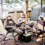 В даному шатрі ми планували зробити кухню (їдальню) та «мозковий блок», і до шатра стикувати по боках два менших CARP PRO шатра, як спальні або спальню і лабораторію. Але ближче до поїздки заїхало декілька шатрів, хоча трохи не та модель «газебо», яку ми хотіли, проте вирішили взяти й закрити питання по житлу. В результаті, вже розмістивши все на березі, вийшло класно логістично і компактно.