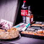 Отже, після будинку адміністрації ми вирушили у свій сектор №1, який забронювали, і почали неспішно займатися облаштуванням табору. Тим часом охоронець привіз нам човен, який можна там взяти в оренду, і трохи згодом - купу дров для вогнища та мангала. На годиннику вже була майже обідня пора, а ми особливо нічого не їли, тому після облаштування табору, першочергово ми вирішили перекусити й вже тоді займатися рибалкою. Повторюсь – рибалка на даному виїзді була другорядною. Оскільки Олег мав проставлятися на даному виїзді, він вирішив замовити ввечері перед виїздом суші, щоб по приїзду не заморочуватися готуванням, а швидко перекусити й займатися снастями, кормами та т.д. Спочатку мені ідея з сушами видалася якась «брєдова», але Олег проставляється – я не став йому щось говорити та нав’язувати, далі Ваня мені подзвонив і сказав, що будуть суші – це якась херня, і то все зам’ялося. Хоче людина на свій Д.Н. – суші, нехай будуть суші. Табір ми розставили, Олег накрив поляну, настав час його вітати, попередньо ми купити торт і замовили їстівне фото на якому вся наша команда з Олегом і трофеєм в руках, і в додачу подарували йому риболовний подарунок, за який він сказав що знав (хоча ніхто йому цього не говорив), але торт був дійсно сюрпризом. Вітання, палки в руки та «погнали пакувати ті суші», яким ми спочатку не придали значення, адже суші зайшли на ура.