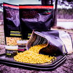 Інша кормова програма була (ананас): Пелет Crazy Carp All Season Pellets - 4,5 мм; ломані на четвертинки пилящі бойли Techno Carp "Pineapple" d.20 1 кг (зроблені на основі меленого пташиного корму, кукурудзяної муки, кондитерських продуктів, патоки, води, сіль, ароматизатор «Pineapple» (Ананас).), Techno Carp Flavored Carp Pellets "Pineapple" 3,6,10mm. І також для скріплення додавали Techno Carp Method & PVA Micropellets Corn & Scopex Mix 700g;