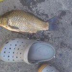 З суботи на неділю рибалив у гощі, ловив на резинку, мастирка та каша, кльову майже не було, вночі спіймав гарного карася та підлящика і на протязі дня пару не залікових рибок, рано приїхало дуже багато рибаків на спутник типу покидать та у всіх повний нуль. Розмір на фото 43. Дякую за увагу.Всім гарного улову!