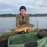 Отож, рибалив сьогодні на дамбі між першим і другим озерами (кидав на обидва озера). Зі сходом сонця зловив одного коропа з першого озера і тишина. Кидав на 70-80 метрів. Десь в 12.00 вирішив поміняти гачки на №12 і випадково (палець зіскользнув) вийшов на 2-ому озері на дистанцію 35-40 метрів. І почалася роздача з другого озера. Працював корм Fish Series від Bounty + Feedermania amino halibut. Попап - білий, белачан від Carp Catchers.
