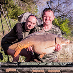 Паралельно з тим наші дуелянти паркують коропа вагою 21,000; - першого коропа 20+ для кожного з учасників їх команди. Сергій домовився з дружиною що збриє свою бороду після того, як спіймає коропа вагою 20+. Борода його ще з минулого року росла і жила своїм життям, а коропи 20+ так і не клювали, можливо він свідомо катався по таких водоймам, щоб як змога довше і змога сильніше відростити той мохнатий комок, але цього разу йому вдалося все ж таки спіймати рибу 20+. І мені цікаво по цей час хто щасливіший більше? Сергій що переступив планку 20+, чи його дружина, що не буде більше тертися об той клубок на його фізіономії J. Фото з трофеєм, святкування Джином та апельсинками.
