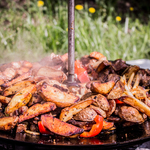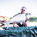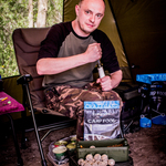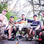 Далі вирішили навести порядок в секторі та потрібно було замаринувати реберця, над якими цього разу вирішив заморочитися – я. Олег і Ваня займалися годуванням точок. Так час наближався вечора. Вже було розпалено мангал, підготовлено реберця та шашлик, зроблені заготовки на салат та соус до шашлику, лишилося все посмажити та скласти до купи. Поки Олег чаклував біля мангала, ми займалися логістикою навколо вечірнього столу, адже всадити потрібно було шість чоловік. По при те, що все було готове, все ніяк не вдавалося всіх зібрати до купи, то одні в'яжуть поводки та стіки, інші пере закидаються, комусь дзвонять, хтось пішов в «зелену будку», а м’ясо остигає – повний хаос творився. І ось нарешті нам вдалося всім разом всістися за одним столом і вже нормально познайомитися. Особливо приємно було коли хлопці подарували в якості презента нашій команді – подарунок, свою продукцію (готові до використання зернові в ЖБ банках ТМ Robin) і підписали пакунок і в придачу до святкового столу пляшечка Jack Daniel's Old No.7. Зі сторони виглядало ніби в когось День Народження – було дійсно приємно. А далі весела компанія, смачна їжа, смішні та цікаві історії, і як Олег каже по всім законам карпфішинга в нас відбулося клювання, біля вудилищ найближче був Ваня тому він і почав виважувати, в результаті ми почули справжній паровоз в цьому сезоні і нам вдалося завести в підсак першу нашу рибу цього сезону коропа вагою 16,500; який клюнув на Crazy Carp THE NUTZ & COCONUT HYBRID WAFTERS. Через годину Ваня мав перекинути четверте вудилище і почав його вимотувати та відчув супротив, що ніби на тому кінці там щось є, і дав мені палку виважувати, але ми відразу домовилися що дана спроба як використана не рахується, адже клювання не було. На виважуванні – я, відразу відчуваю що риб іде якось не зрозуміло немов якийсь мішок, Ваня каже що можливо забагрився і тільки завівши в підсак ми помітили що то не короп, а товстолоб – перший спійманий мною товстолоб вагою 11,800. Згодом на протязі години, ми отримуємо ще два клювання не все теж саме четверте вудилище, обидва ми реалізовуємо серед яких наша перша риба 20+, а саме короп вагою 21,800; який клюнув на помаранчевий вафтерс.