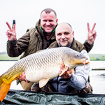 Погода стабілізувалася, дощ припинився повністю, а з ним і припинилися клювання по всій водоймі. Приймаємо рішення пошукати двома вудилищами рибу на над дальніх дистанціях, і це почало приносити результати, на фоні інших команд в нас кожні 30 хв. клювання риби 11-13 кг. Під час одно з клювань підсік Олег і почав відчувати шалений супротив, риба почала давити, і він розуміючи відповідальність кожного клювання, а тут окремий випадок клювання та поведінка риби не схожа на попередні, віддає мені вудилище, щоб уникнути відповідальності. На що я йому відповів: «Ти зможеш, помаленьку не переживай, пробуй сам»., возився він з тою рибою десь пів години, але потім все ж таки віддав вудилище мені, бо вже почала терпнути рука, я з тим рибом провозився теж хвилин з 20 в результаті він зібрав ще дві ліски до купи і я вже виважував три оснастки й риба на тому кінці, проте нам вдалося завести коропа в підсак, і як я очікував там був спортсмен вагою 11 кг який себе вів як «генерал» і потріпав всім нерви. Потім довелося розплутувати ті «бороди» з лісок, потратили трохи часу, три вудилища було на березі, що не дуже добре при активному кльові, але добре що все розплутали й не обрізали.