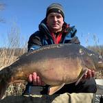 Уже в 11 часов у нас была первая поклёвка. Вытащив улов, это оказался зеркальный карп, который завесил почти 7 кг.
