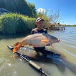 Потім за годину знов клювання, беру палку, відчуваю що тяжка риба, передаю Гальчаку Вадиму і він реально круто реалізовує цю покльовку - рибу вагою 23 940!👍🎣