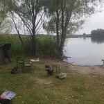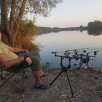 Начала появляться уверенность и предпъедестальная эйфория , но как обычно бывает в таких случаях, оказывается что у судьбы на этот Счёт своё видение))) Очередная рыба отправилась в мешок, перезаброс и в этот момент проскальзывает рука и флет ложится на перехлест с рядом стоящей удочкой. Думаю, ладно, поменяю их местами и перезаброшу ту что оказалась снизу. Затягиваю фрикцион и в момент выматывания цепляю ту что только что забросил. Ну, теперь надо перезабросить и эту, значит оставлю каждую на своей точке. Отставляю ее на сподовую подставку, флет остаётся в воде в нескольких метрах от берега и начинаю перезаряжать снова первую удочку. И вижу как оставленная мной на подставке удочка, буквально слетает с нее и начинает плыть, быстро все бросив, я лечу в воду и метрах в семи от берега ловлю свою удочку. Не долгая борьба и карп чуть больше 5кг оказывается в подсаке. Хух и удочку спас и рыбу взял. Весь на эмоциях, с удочкой в руках, и рыбой в подсаке, начинаю выбираться из воды и сам не замечаю как тканью подсака захватил шоклидер, пошло натяжение иииии... хрусь и среднее колено удочки ломается прям пункт назначения какой-то.. И скажем так, это была моя единственная дальнобойная удочка, а т.к дальнобойная одна, то запасных у меня естественно нет, кроме детского бюджетного лайт фидерка 3,6м за 400грн, которым я с трудом бросаю 60м.