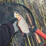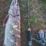 Первые дни разведка, как береговая в забродку, так и с лодки. Микроджиг собирает стандартных окунька и щучку, с лодки влетают и экземпляры по серьезнее. Ловля на мушку даёт понимание активности бели, её стоянках и характере движения. Глаз уже на автомате схватывает и кладет в копилку каждую россыпь малька, всплеск хищника, пузырьковую дорожку лещевой стаи. И вот предположение, начинает проверяться на практике. Поклёвка. Больше десятка лет служащий верой и правдой спиннинговый комплект, принимает первый удар. Вроде обычная поклевка. Первые пару секунд, ощущение стандартной рыбы, а затем спин в дугу. Визг фрикциона. Вожусь минут 7. Вижу контуры крокодила. Адреналин просто фонтанирует. Но от головы монстра отделяется силуэт, он развернувшись уходит. Силуэт оказывается 700 граммовой щучкой. Я даже не разочаровался. Скорее наоборот. Теперь у меня в копилке тоже будет такой случай. А главное характерное место и активность крупной рыбы. К закату выхожу на аналогичного плана рельеф. Ставлю крупного силиконового рипера на джигголовке. Темнеет, большой надежды на поклёвку нет. А она происходит. Уже на выматывании, я вижу приманку и следом молнией выныривает щука. Берет. Спин мощный, но был пережат фрикцион. Кульбит из 3-4 свечей прямо по борту лодки. Я мокрый. И совершаю огромную ошибку решив брать рыбу в подсак не по размеру. Входит только голова и кусок туловища, за сетку цепляется полуразогнутый крюк. Взмах головой и приманка выпадает из пасти, а щука из подсака. Бросаюсь на колени и снова, как бабочку сачком, пытаюсь её накрыть. Благо она стоит обалдевшая. И накрываю таки!!! Но одномоментно задеваю спин и он падает в воду. Выбор однозначный. Я ловлю подсаком катуху, скрывающегося в глубине спина. Щука уходит... Руки трясутся, мысли прыгают, жутко корю себя дурня, что не взял липгрипп... Потом конечно все успокоиться. И созреет, сначала смутный, затем достаточно точный план действий. И я возьму двух красавиц...