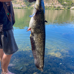 Я зняв 10 секунд відео нашого сектору і тут раптово починає пищати один з сигналізаторів вудок і хост наполягає, щоб я тягнув рибу. На тому кінці виявився якийсь такий жвавий боєць, який добряче наполягав на своєму праві вільного пересування по дну цієї кам’янистої ріки. Але за хвилин 10 він вже позував над матом в моїх руках. То був звичайний сом, розміром з кілограм 10 (це на око Ніка, який їх вже тут переловив не одну сотню штук). Неймовірний початок.