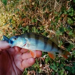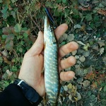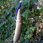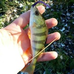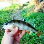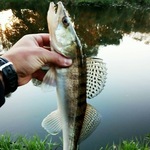 В улові окунь, мікрощучка, судачок (вперше зловив його на спінінг). Вода дуже прозора, тай рівень високий. Деякі перспективні місця стоять під водою. Оскільки вчора було сонячно та прозора вода, то вирішив шукати окуня поблизу підводної рослинності і приманки використовував темних кольорів. Оснастка джиг-ріг 3.5-5 г, приманки 1.8-3 дюйма. Окунь був пасивний, один з точки і все, і то не на всіх робочих точках. Тільки під вечір знайшов місце де зловив 3 окуні та судачка, це був вхід у яму. Судачка зловив на Поларіса 3". Всю рибу відпустив. Сподобалась мені спінінгова рибалка, обовязково цього року ще походжу з спінінгом по берегах Горині.