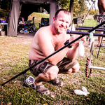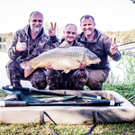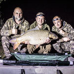 А далі потрібно було вже перезакинути всі вудилища і знову чекати на клювання, яке на довго не затягнулося. Близько 3.00 ще одне клювання, цього разу інше вудилище. Олег вже був в спальнику, я першим почув звук сигналізатора і почав кликати Олега, він довго не думаючи вискочив босяком і побіг в сторону род пода і підсік, згодом ми запаркували і його риба в підсак, голий короп вагою 19,000; на цю мить це був найбільший короп в нашій команді на даній сесії, який клюнув на варений Crazy Carp DEVIL SQUID з підрізаною шапкою поп апа Carp Catchers Banana Cream. Знову кава, ми з Олегом та Водяним знову по 50 грам за трофея, поки фотографувалися, знімали відео відпускали рибу, перезакидалися, сон пропав зовсім. Наше коло виважувань замкнулося і настала моя черга виважувати, лишилося тільки дочекатися клювання, яке відбулося близько 6.00 на перше вудилище з зернової точки, я виважую, але супротив особливо не відчуваю, таке враження що вимотуєш пусту оснастку. Але біля берега ліску починає водити в різні боки та вже ближче до поверхні ми бачимо «бабушку», так хорвати називають місцевих гігантських лящів. Я був засмучений і розчарований, що моя спроба чи черга профукана, і почав лобіювати, що так не чесно, і варто не враховувати лящові клювання, хлопці мене трохи ще подратували й погодилися. Наступне клювання сталося відразу після відпускання ляща на шосте вудилище в напрямку камиша і цього разу я відчув справжній короповий супротив, але невдовзі риб здався і нам вдалося завести його в підсак – ним виявився лускатий короп вагою 16,500; (на насадці варений Crazy Carp DEVIL SQUID з підрізаною шапкою поп апа Carp Catchers Banana Cream.) На цьому клювання до самого ранку ми не отримали.