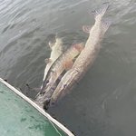 Нарешті вдалося відловитися в цьому сезоні на Горині! Місця перевірені, десятки шнурків раніше були відпущені, тепер вони підросли і радували нас клюваннями! Принципово впиралися у великі приманки і глибини від 3 метрів, всі щуки впіймані на різні кольори і воблери, але всі сиділи на глибинах близько 4м. Малька ще на ямах немає. По дорозі було дві зимувальні ями, які вивчили ехолотом, зараз там риби зовсім немає, хоча все літо вона там була.