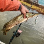 Место выбрал новое, оно меньше продувалось, посему готовился морально к разведке. Зарядил Metsui Jerk Master и коробку воблеров прихватил. Пошёл по маршруту и офигел от полного отсутствия рыбы… километра полтора, практически, вхолостую оббросал. В одном кармане щучку килошную забрал на Usami Kumo.