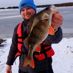 Вдалось в неділю разом з Сергій Лич і Sasha Rozhok вирватись на "тверду воду" в Оселю. Лід, попри мінусову температуру, 4-6 см, тому пересувались акуратно і з пешнею. Від нуля відійшли, рибкою руки запахнили. Адреналіну додав окуньчик, зловлений на мормишку на жилці 0.09, при зважування якого вага показала 660 грам. Поки це мій рекорд по окуню зловленому саме на мормишку.