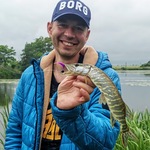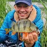 Перші пів години присвятили напрацюванням навичок закидання, і вже під час перших кількох спроб, новачок дістає окунька на палець. Початок покладено, рибка маленька, але власноруч впіймана на спінінг - важко передати ці позитивні емоції, що я спостерігав. Незабаром я впіймав маленьку щучку, яка мене практично не порадувала, а Кирила зацікавила, адже він спостерігав весь процес та вчився, йому було цікаво все. Подальші півтори години були не втішними - всього кілька невеликих поодиноких окуньків, Кирило все ще вчився закидати. Ось знайшли, нарешті, місце скупчення окуня, хоч настрій піднявся, щоправда кльов був не довгим.