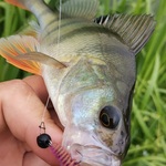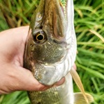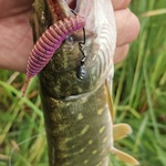 Щука притихла, але почав клювати окунь, різнокаліберний. Пригадавши весняну ловлю пасивної щуки, я вирішив змінити приманку на об'ємну личинку FishUp Tanta 2.5", адже зубата там точно ще була, але атакувати віброхвости, раки та блешні вона відмовлялась. Моя ідея принесла результат, щоправда не відразу, спочатку я впіймав пару окунів, а потім відчув і щучу подачку. Цього разу рибу всік надійно, та й з латаття вдалося вивести, та й з води дістати. Радості було багато, ніби трофея взяв, ще б пак, стільки невдалих клювань, і тут нарешті є!