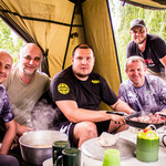 Орієнтовно ближче до вечора в нашому секторі знову поповнення – цього разу гість (Віктор Жеребятьєв – команда Carp Family Team) наш давній товариш, який проживає відносно недалеко від водойми Ульяники, тому вирішили запросити його в гості. Багато хто знає – що Віктор душа компанії, з ним ніколи сумувати не доведеться, хороший рибак, сімейний рибак – оскільки намагається їздити на риболовлю чи то турнір беручи своїх дітей, і дуже хороший кухар, який нас балував протягом наступної доби (хоча ми теж не одну вермішель їмо на риболовних сесіях), але в віті кулінарія на рибалці трохи на іншому більш високому рівні. Отже, дружні обійми та вітання, невеличкий оператив з легкими закусками у вигляді різноманітних сирів та м’ясних смаколиків під благородні напої (після чого Сергій почав говорити що ми буржуї чи то барони), де не стоїть за мету випити як змога більше та «випасти з трусів», а головне відпочинок, приємна компанія та цікавий діалог. Саме така атмосфера панувала в нашому секторі. Оскільки риба особливо нас не радувала і наступне від ранку клювання ми отримали тільки о 17.45 – знову не залік (короп вагою 13,500) з ближньої дистанції. Час від часу ми підкормлювали точки, перезакидали вудилища. Хоча і давав якісь поради нам Вітя ми більше дотримувалися своєї тактики.
