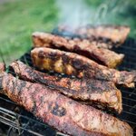 Поступово обід почав перетікати в вечір, і цього разу Олег вирішив приготувати страву на велику компанію – гарячу сковорідку, адже в нашому секторі знаходилося п’ять дорослих чоловіків серед яких Іван (який вже знову проголодався). Кожен займався своєю справою, хтось готував, хтось кобрився та перезакидався – всі щось робили. Час швидко пролетів і посеред нашого шатра з'явився справжній святковий стіл, де головним акцентом посеред столу була величезна сковорідка (з борони) наповнена смаженими різноманітними овочами, картоплею та м’ясом. Якраз в цю мить повз наш сектор проходив Юрій (власник водойми Ульяники) – напевно запах від сковорідки розтягнувся по всій водоймі. І ми люб'язно запросили Юрія приєднатися до нашої дружньої компанії. Смачна їжа, благородні напої, неквапливість у всьому (благо відсутність клювань дозволяли повечеряти) історії та розповіді, а згодом футбольний матч Динамо-Штурм і вболівання за Українську команду, що може бути кращим, не вистачало лише клювання.