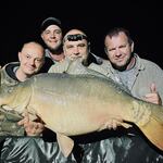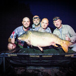 Близько 04.10 відбулося ще одне клювання і на виважуванні – я, і цього разу по відчуттях не те що було до того, риб йде повільно та вальяжно, та особливо не пручається, лише давить вагою, а далі традиційні танці біля вимостки, проте згодом рибу вдалося підняти на поверхню, але вона вивернулася та пірнула під вимостку та закрутила шок лідер навколо труби, Сергій швидко взяв підсак і почав за шок лідер рукою підтягувати в нього рибу (благо короп не почав показувати свій гонор) і спокійно дав завести себе в підсак. Як би не допомога Сергія з розплутуванням та паркуванням риби, вона обов'язково зійшла. Тільки завівши в підсак ми побачили що то був за риб, і вже піднявши його у двох в слінгу, зрозуміли що то була залікова і так потрібна для нас риба. Вага показала 26,910; і від мене в нічній темряві пролунало: всім відоме «Ту-тууууу» Сергія Миколайовича Голобородька з команди «Smile Fish», і в цей момент напевно в нього щось у вісні тьохнуло J. Радості не було меж. Ми розуміли що сектор знову почав працювати як треба, постійні клювання риби й захід крупної, і в нас ще є близько п'яти годин часу, щоб поборотися за третю і навіть другу сходинку турніру – спіймавши коропа вагою 22+ і це було цілком реально зробити враховуючи попередні проходи риби. Викликаємо суддю на зважування та фіксуємо вагу. Робота в секторі закипіла, той хто хоч трохи ходив дрімав проснувся повністю і навіть Олег який заснув не міг повірити що ми спіймали такого коропа. І тут я як кліщ вчепився за Сергія та за парі яке ми влаштували і умовою якого була риба 25+ тоді Сергій збриває бороду (аргументуючи тим що як би не він то риба зійшла, і це здобуток команди, а не того хто виважував, а виважував як завжди – Я, просто мені пощастило взяти вудилище в руки….). Він спочатку пручався та віднікувався, хлопці з команди особо не давили на нього, але вирішив що не лишу це діло і заручився підтримкою Саші Брадарського команда «Гострі Гачки» м. Одеса. І нам вдалося його дожати вже по дорозі додому (коли в нього відвалився глушник від авто не встиг Сергій від'їхати від озера), я зауважив що «Водяний» балаболів не любить, і для нашої команди карма це головне. Тому завдяки спільним зусиллям команди, Саші Брадарського і відірваним глушником, а саме головне коропу вагою 26,910 – Сергій буде виглядати гарним та поголеним як «попка малюка» J
