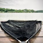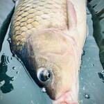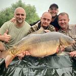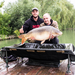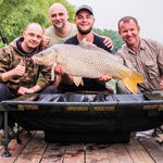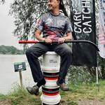 Близько обіду одиничний пік, за яким слідував ще один, далі – два, і потім поступовий розгін звуку сигналізатора (моя черга виважувати), підсікаю та починаю неквапливо викачувати рибу. По відчуттю риба не пручається та йде з певним опором до берега. А біля вимостки починається самий важливий та відповідальний етап виважування, де потрібно підняти (відірвати рибу від дна) і тим самим не дати їй зайти під вимостку та закрутивши ліску за металеві труби вимостки – зійти. Так було і цього разу, рибу не вдавалося відразу підняти і неможливо було розуміти величину риби, яка не хотіла йти до поверхні, риба кружляла навколо сектору і давила своєю масою, але поступово почала здаватися і час від часу здавати свої глибинні сантиметри, рухаючись до поверхні. А ще трохи згодом вдалося запаркувати її в підсак, де вже ми побачили що спіймали саме ту рибу яка потрібна для нашої «чемпіонської копілки» - вага показала 22.210; Перша моя та командна риба 20+ в сезоні 2022, але для п'єдесталу однієї такої риби не достатньо, тому не збавляючи темп працюємо далі та намагаємося все ж таки розібратися з нашим сектором… Орієнтовно 16.05 отримуємо ще одне клювання з попередньої точки, і цього разу не заліковий короп вагою 7,000; (але дана точка приносить нам друге клювання) і ми вирішуємо трохи закцентувати на ній і підкидаємо коброю трохи більше бойлів.